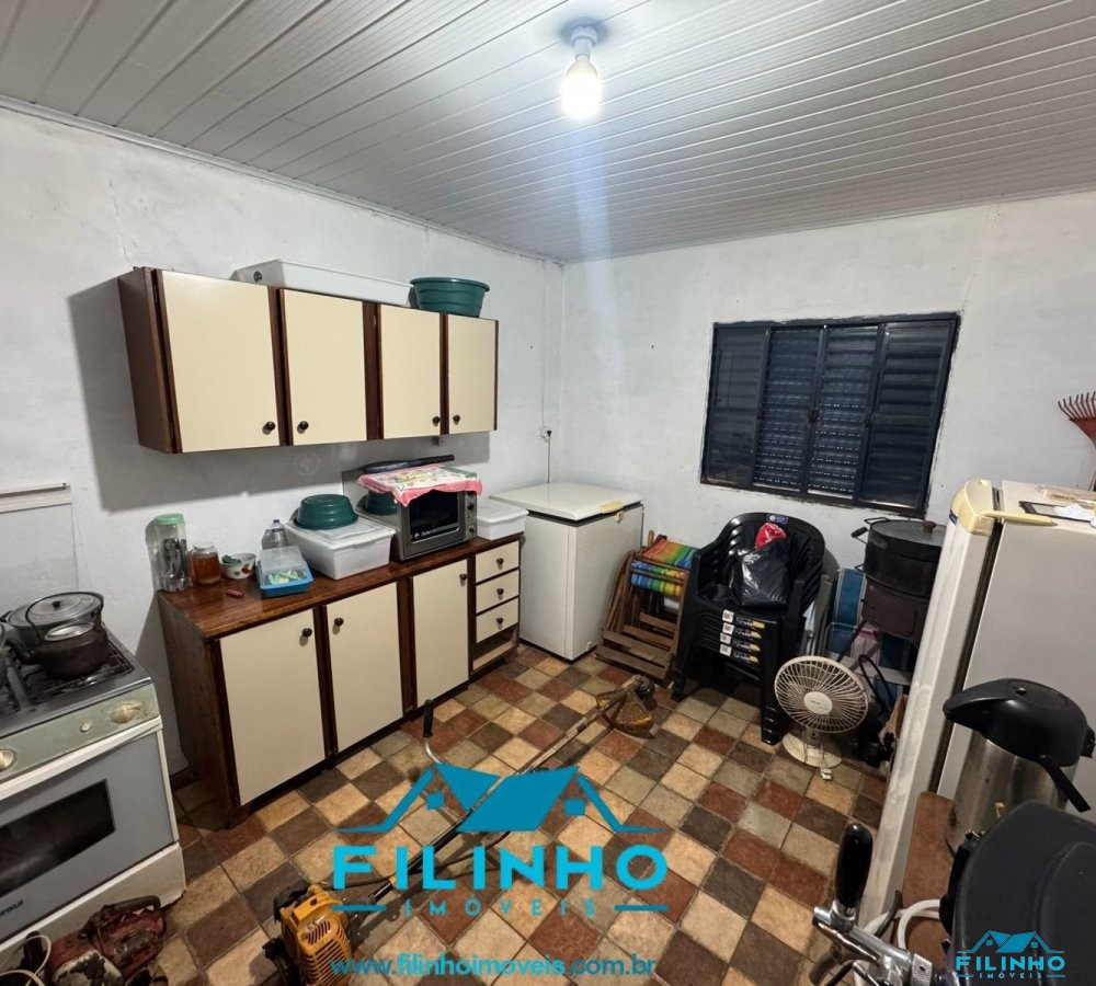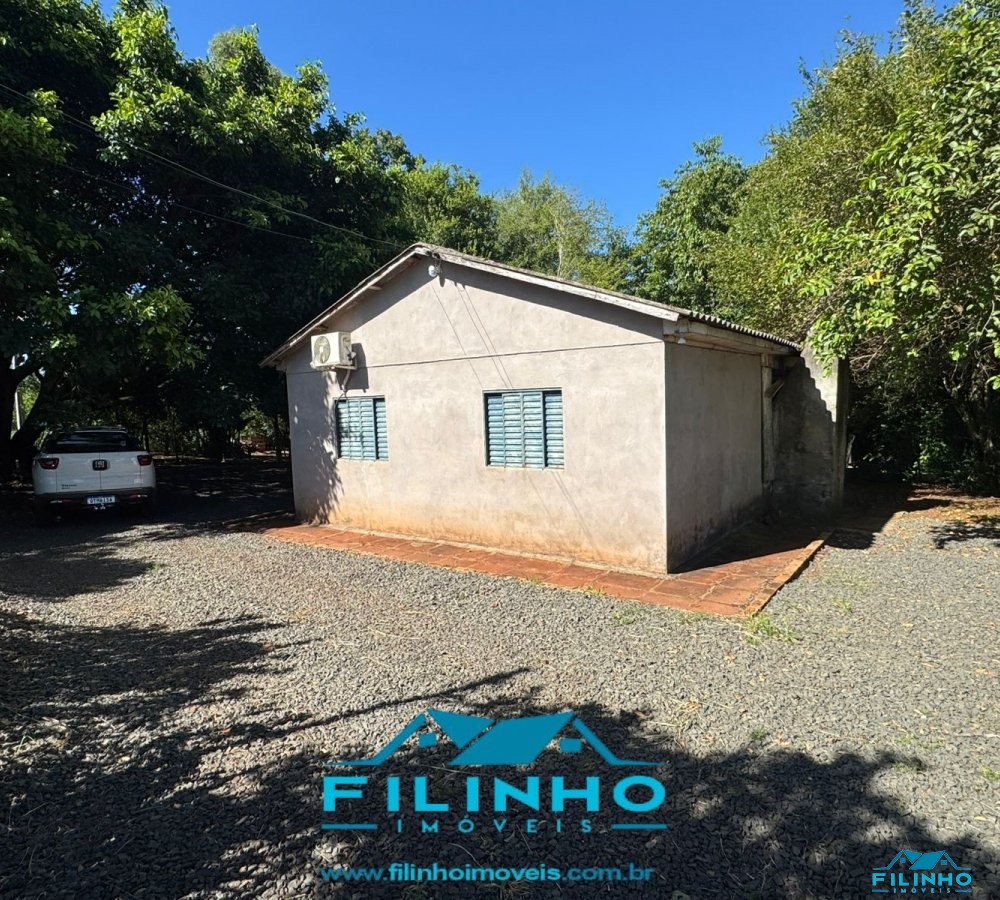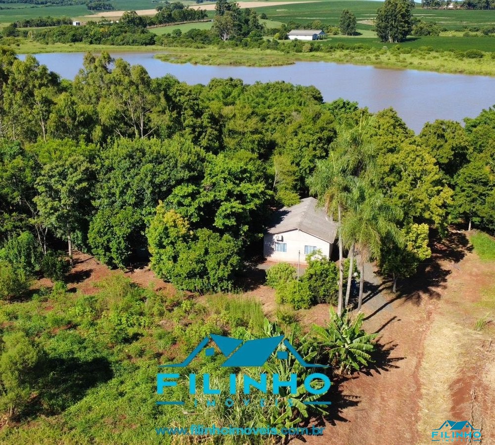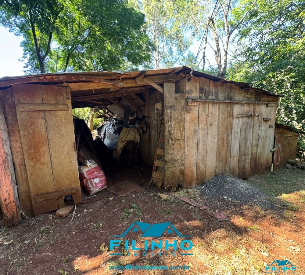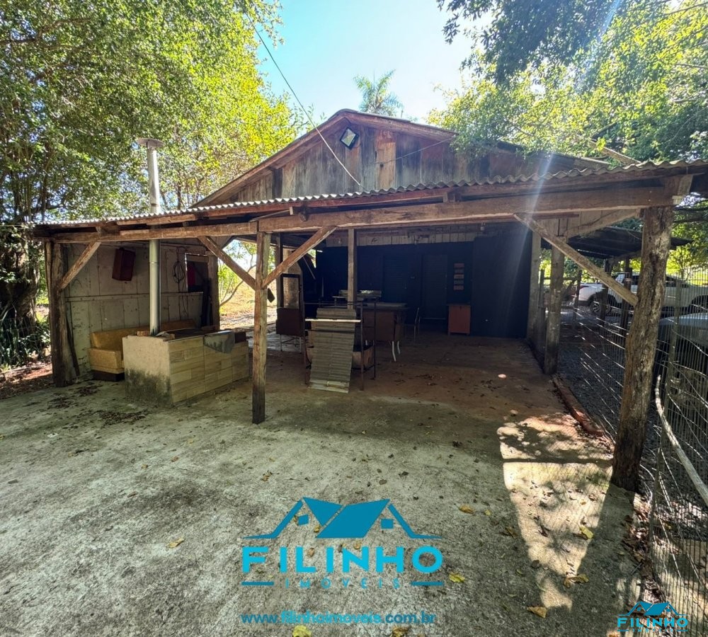* Contém uma benfeitoria de construção mista (quarto, cozinha, banheiro, festeiro com churrasqueira e fogão campeiro) e um galpão de madeira.